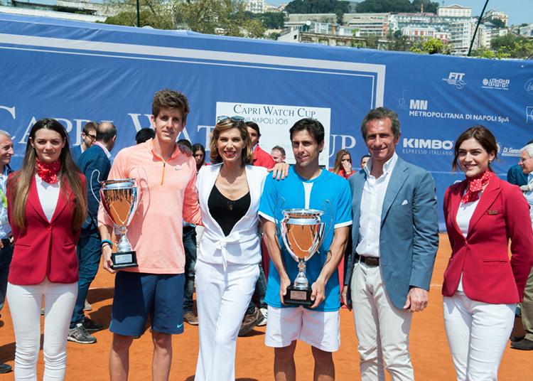 (Nella foto: la premiazione dei finalisti 2015, lo spagnolo De La Nava e l’azzurro Donati, con il presidente del Tc Napoli Luca Serra e con la madrina dell’evento Veronica Maya)