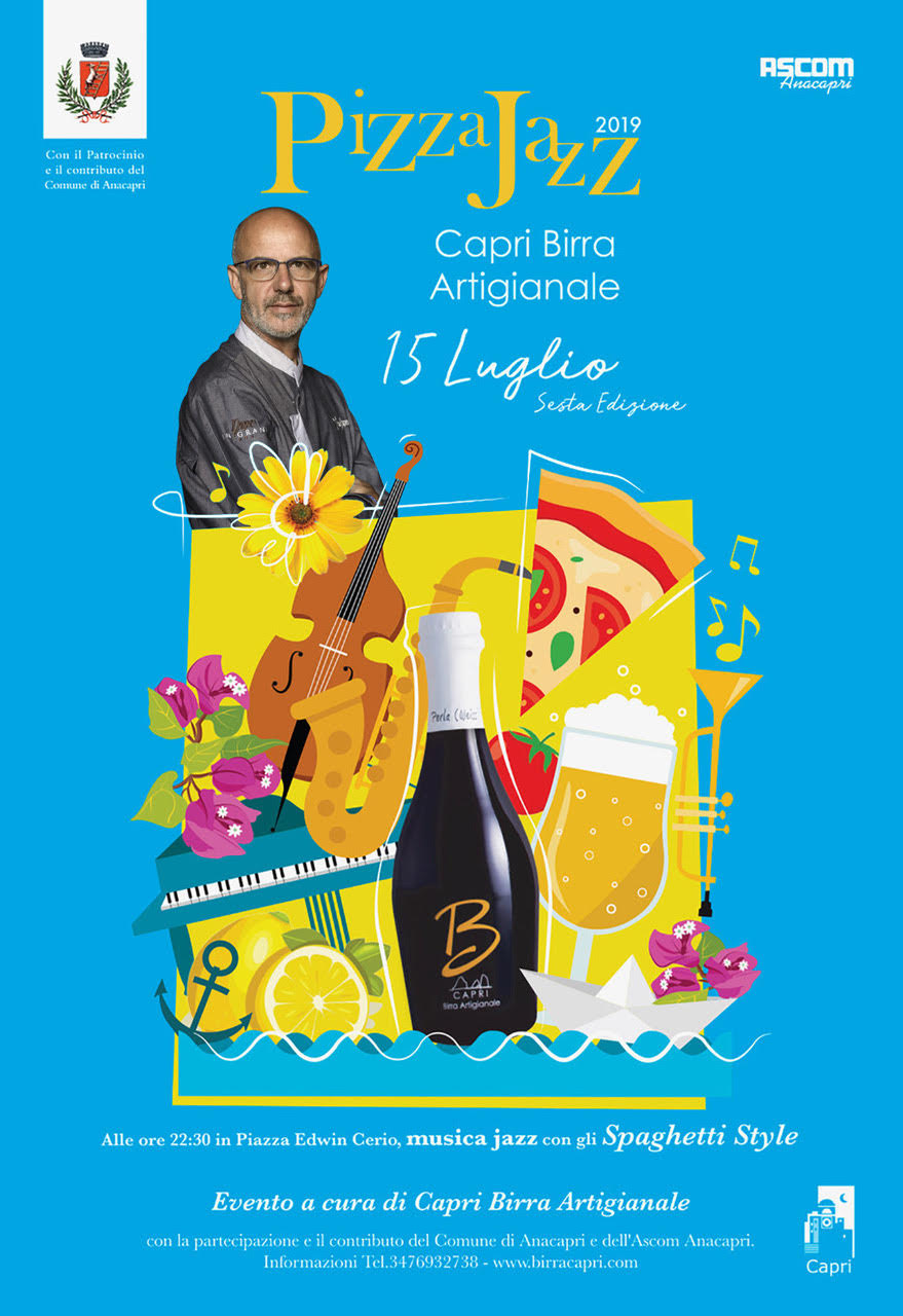 Il Pizza Jazz Birra Capri torna nel centro storico di Anacapri, il 15 Luglio, per la sua 6a edizione. Come ogni anno, dal 2014, il Maestro Franco Pepe di Pepe in Grani sarà il padrino di questa manifestazione, accenderà il primo fuoco e resterà nella bellissima cornice di Anacapri, per la supervisione dei forni a legna. Sarà, come sempre, un’occasione di festa che coinvolge la popolazione isolana e i turisti, mettendo insieme musica, Birra di Capri e pizze di qualità.