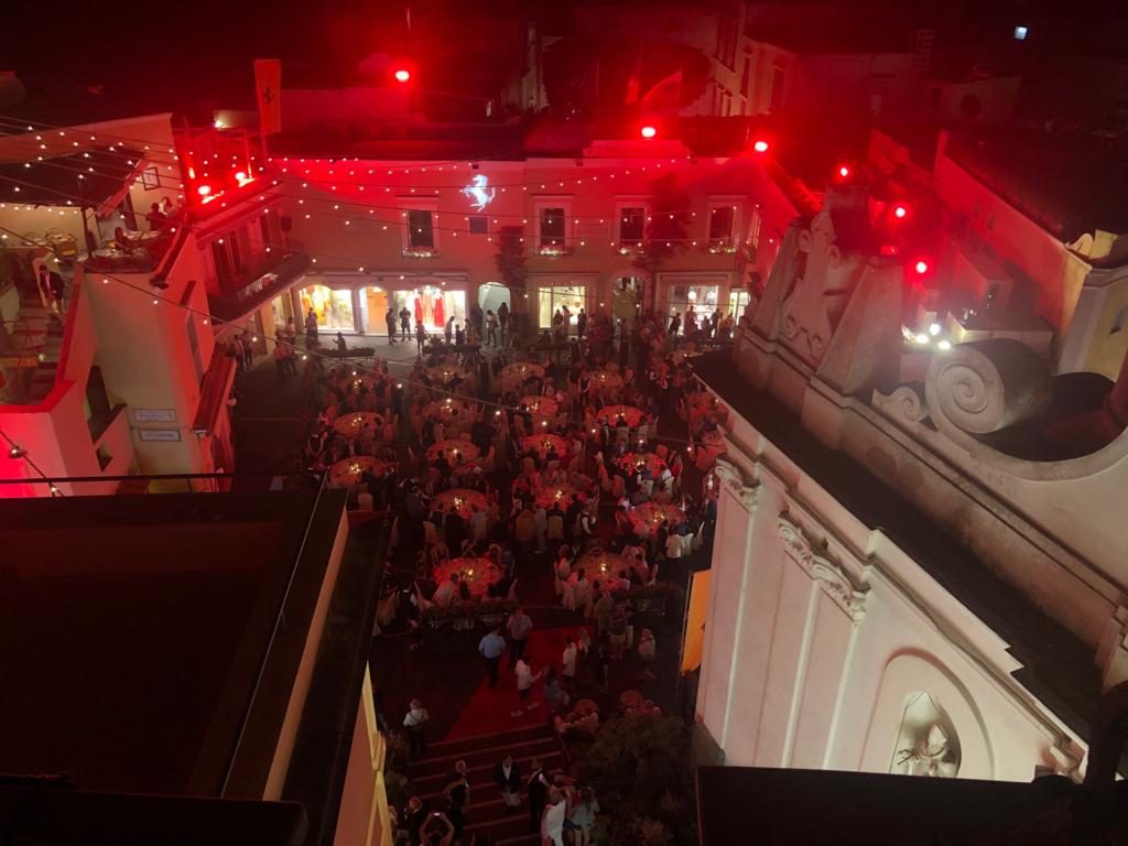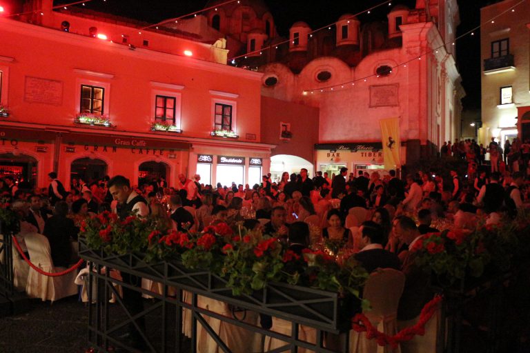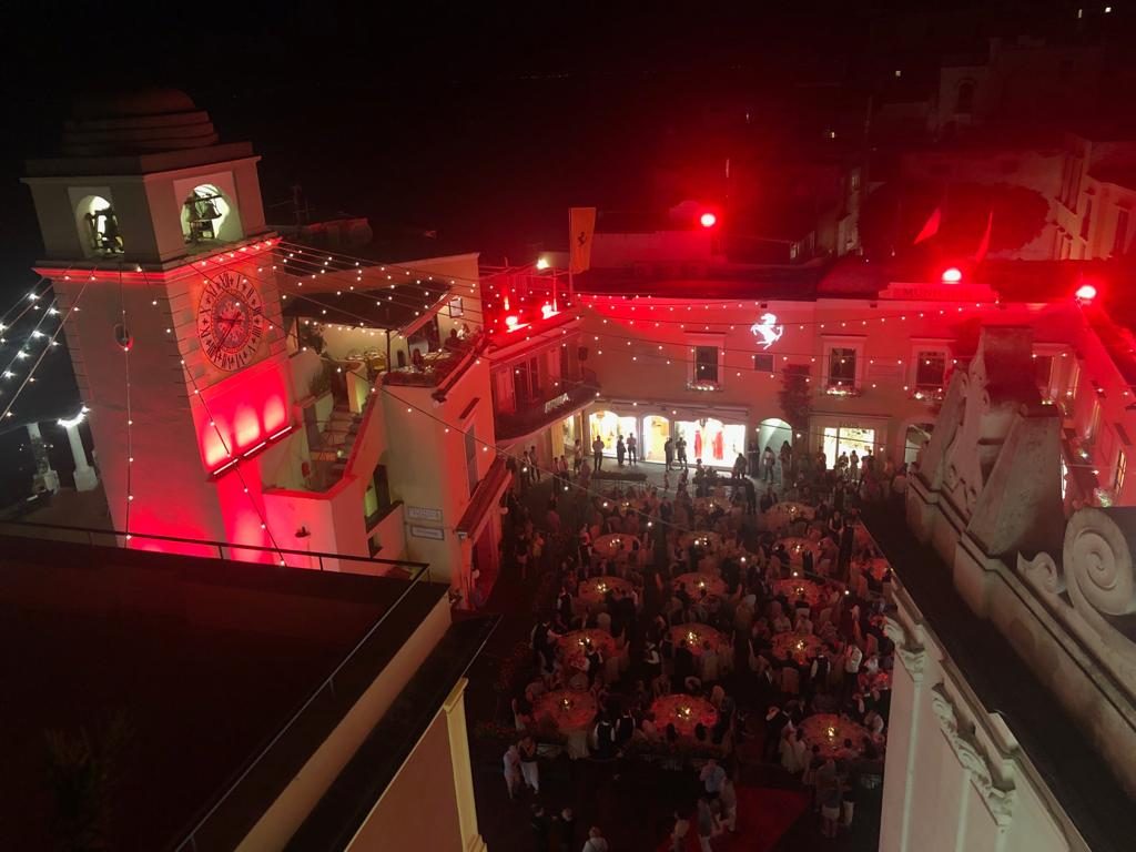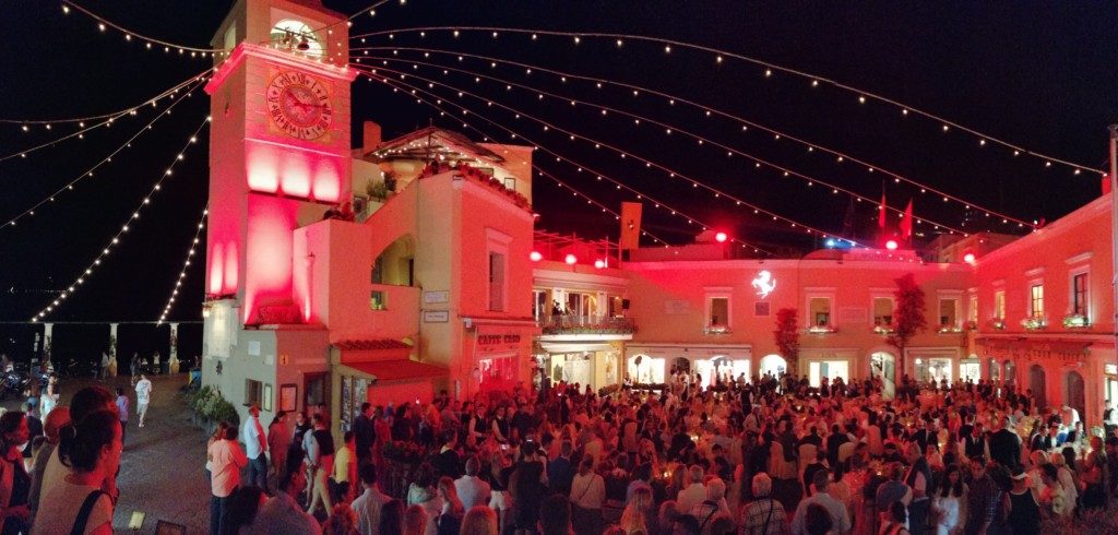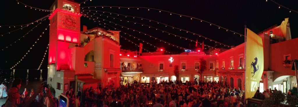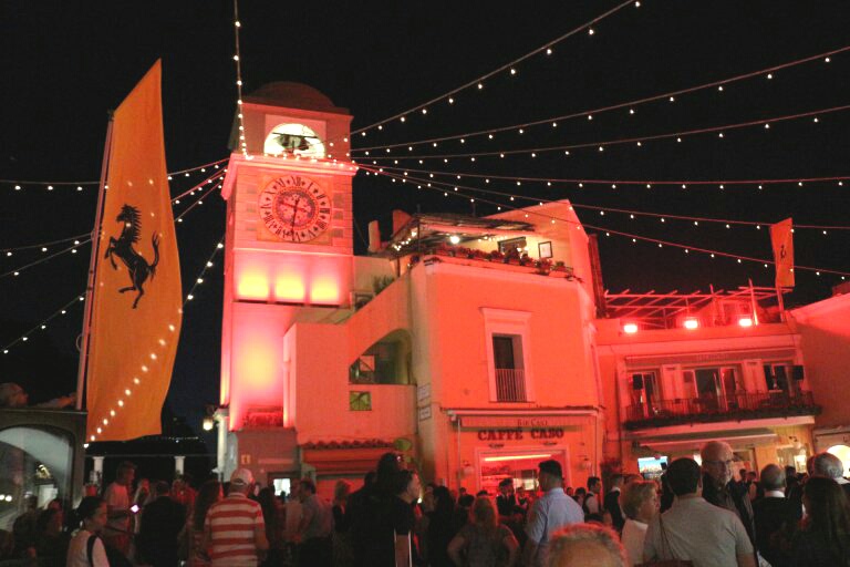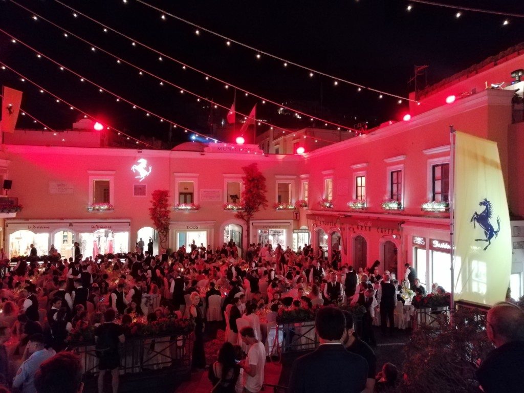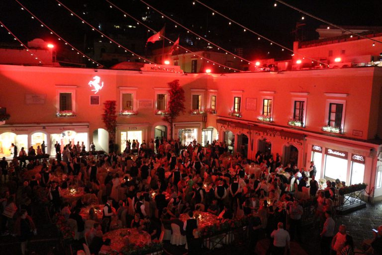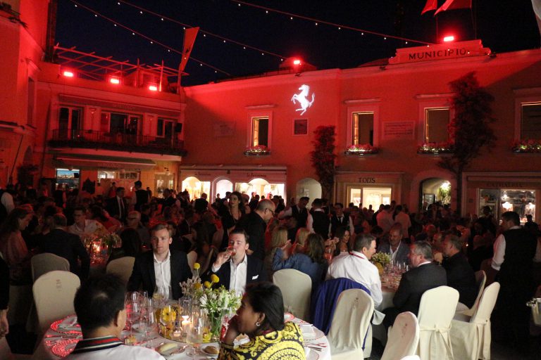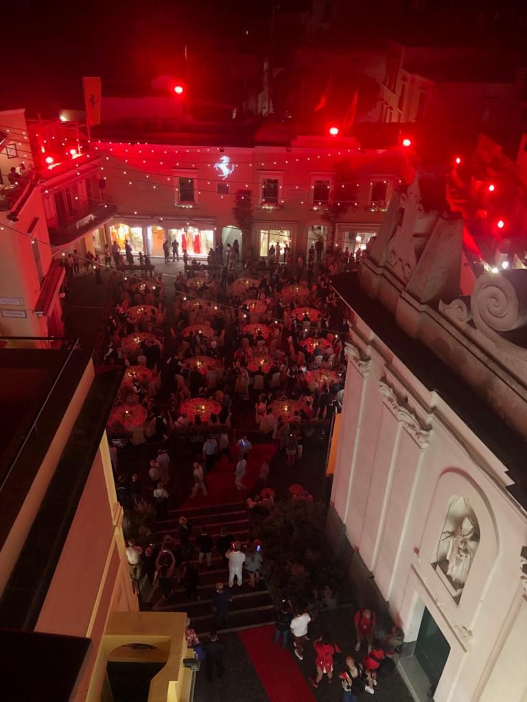 Un look davvero suggestivo quello della Piazzetta ieri sera, tra luci rosse e il celebre simbolo del cavallino rampante proiettato al centro, che ha attratto tanti appassionati della casa di automobili di lusso a scattare foto e video con lo smartphone alla mano, agli angoli della Piazzetta. Una cena organizzata con eleganza e maestria dallo chef del Grand Hotel Quisisana Stefano Mazzone, il quale insieme a tutto lo staff dell’Hotel che ospita l’evento, è riuscito a deliziare gli ospiti con un menu a base di tutti i sapori della Campania Felix. Ad accompagnare il banchetto Ferrari, come sottofondo, le arie operitsiche più famose che hanno riecheggiato dalle voce di tenori e soprano, dai balconi del Municipio, fin poi alle note di un quartetto Jazz, dal corner del Piccolo.