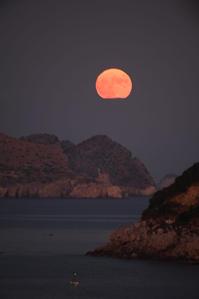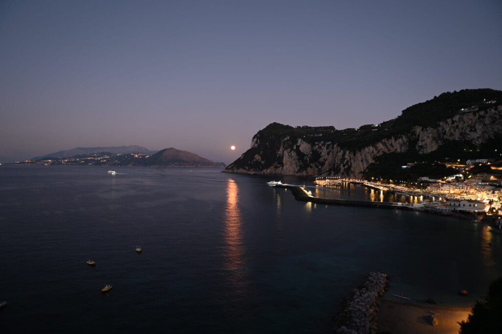 Una straordinaria luna rossa ha incantato per circa un’ora quei fortunati capresi e quei pochi turisti che questa sera si trovavano sul versante di Marina Grande a nord dell’isola proprio nel momento in cui spuntava dietro Punta Campanella una straordinaria luna rossa, che ha illuminato la scena nonostante il buio fosse calato da qualche ora. L’enorme disco rosso che si è rispecchiato in un mare, straordinariamente piatto vista la stagione, ha reso l’immagine ancora più suggestiva simile ad un quadro dei primi pittori che dipingevano l’isola agli inizi del 900’.