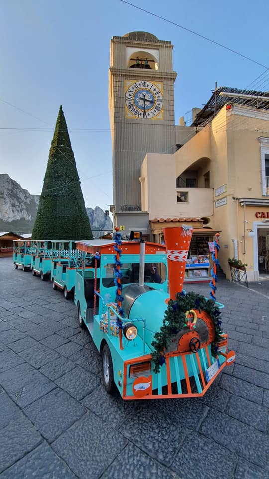 Viaggio di Natale con il trenino della felicità. E’ io nome dell’iniziativa ideata e promossa dall’Assessore all’Infanzia della Città di Capri, Salvatore Ciuccio, nell’ambito del programma di Natale dedicato ai bambini. Ieri il trenino blu e rosso ha attraversato la piazzetta per fermarsi nell’area di sosta dei giardini della Flora Caprense in attesa di prendere il via sabato 14 dicembre partendo da Piazzetta Quisisana dove è stata fissata la stazione virtuale, per continuare per via Camerelle la strada dello shopping griffato e scendere per via Ignazio Cerio che conduce alla Certosa per proseguire poi alla rotonda dei Giardini di Augusto e fermarsi di nuovo alla stazione per far salire altri piccoli viaggiatori e far provare loro un’esperienza inedita per Capri. Non mancherà il tour che include la Piazzetta alla base del campanile dove sono sistemati i mercatini di Natale per poi riprendere il viaggio. Il trenino della felicità viaggerà sino al 23 dicembre per la felicità dei bambini di Capri che attenderanno poi l’arrivo della notte magica del 24 quando riceveranno i doni di Natale. In attesa dell’arrivo di Babbo Natale nelle loro case.